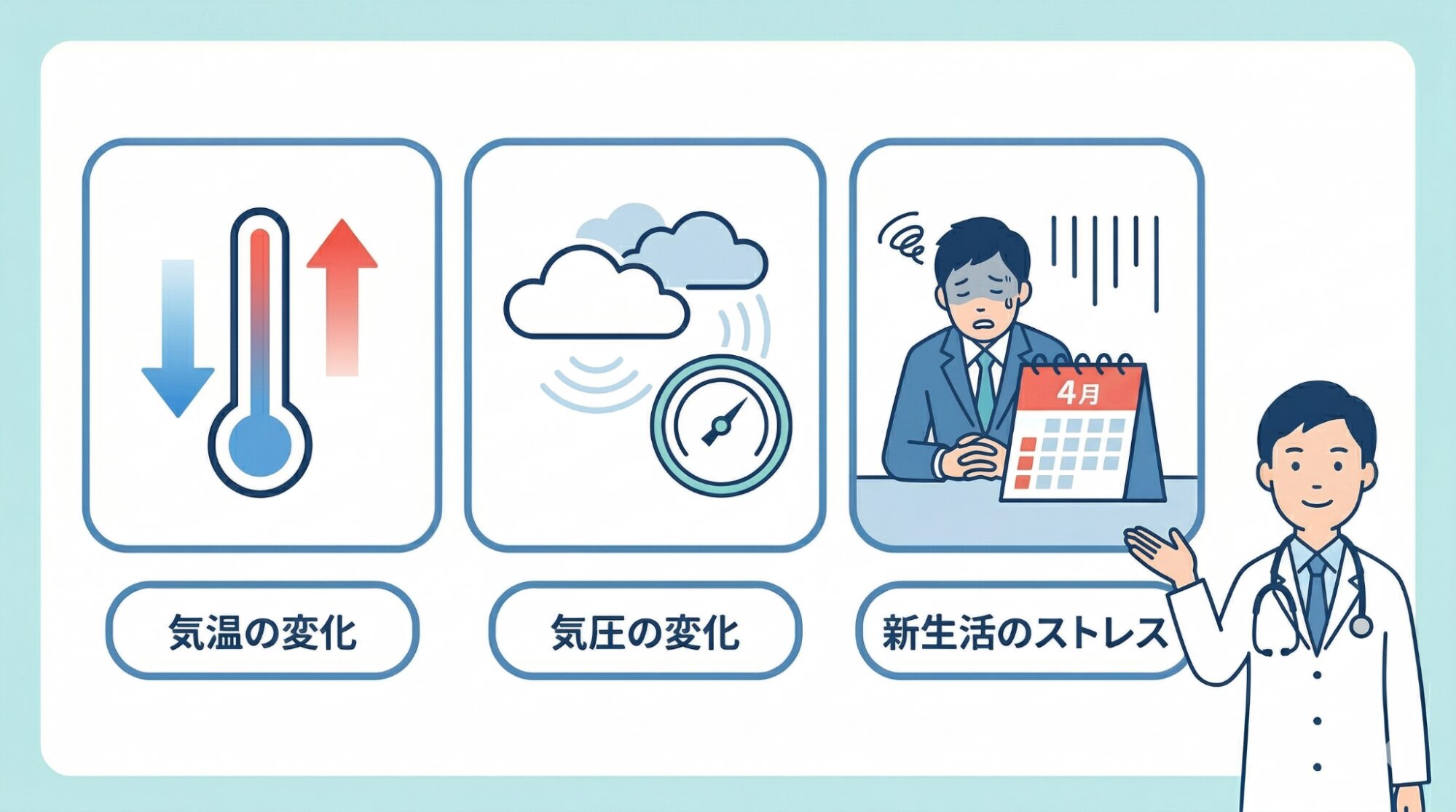 春特有の気圧の変化が内耳にストレスを与え、自律神経のバランスを崩してしまいます。